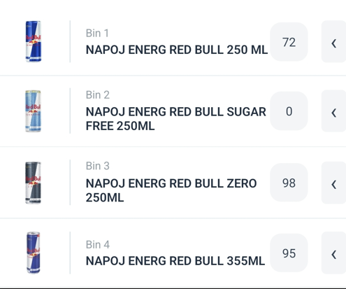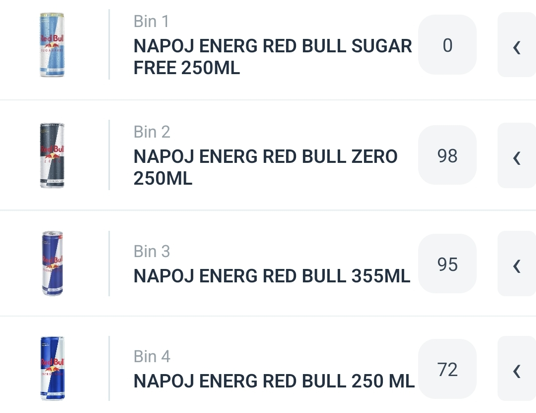 In the example below, products can arranged differently for easier recognition: the Red Bull 250ml could be in Bin 1 and Red Bull 355ml in Bin 4 – with other colours in-between them. The same principle has been applied in the correct photo, where two “yellow” items were separated by a “blue” one.