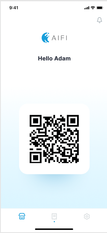 The user can use the QR code on the home screen to scan at the entrance door of the store.