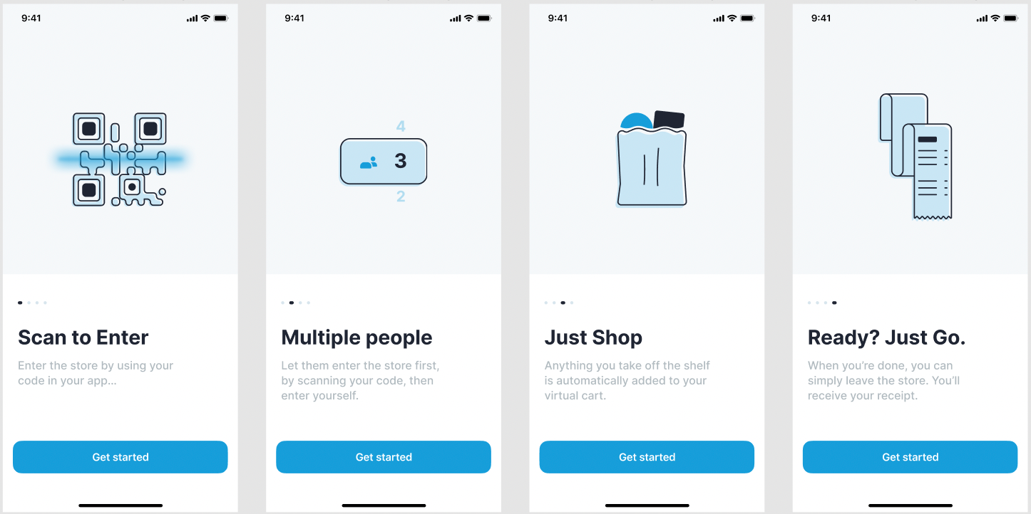 Once opening the app for the first time, the user goes through the "How it Works" Guide, which contains instructions on how to use the app in the autonomous store.